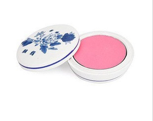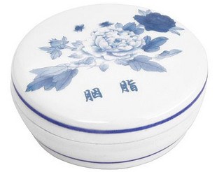 【包装特点】:内包装:采用景德镇瓷器完全复制古代胭脂盒,青花瓷,本身就是一件艺术品。圆盒直径6.7厘米,盒盖上绘有牡丹,胭脂的颜色如图所示,含珠光粉粒,为您带来光泽立体的肌肤质感。
